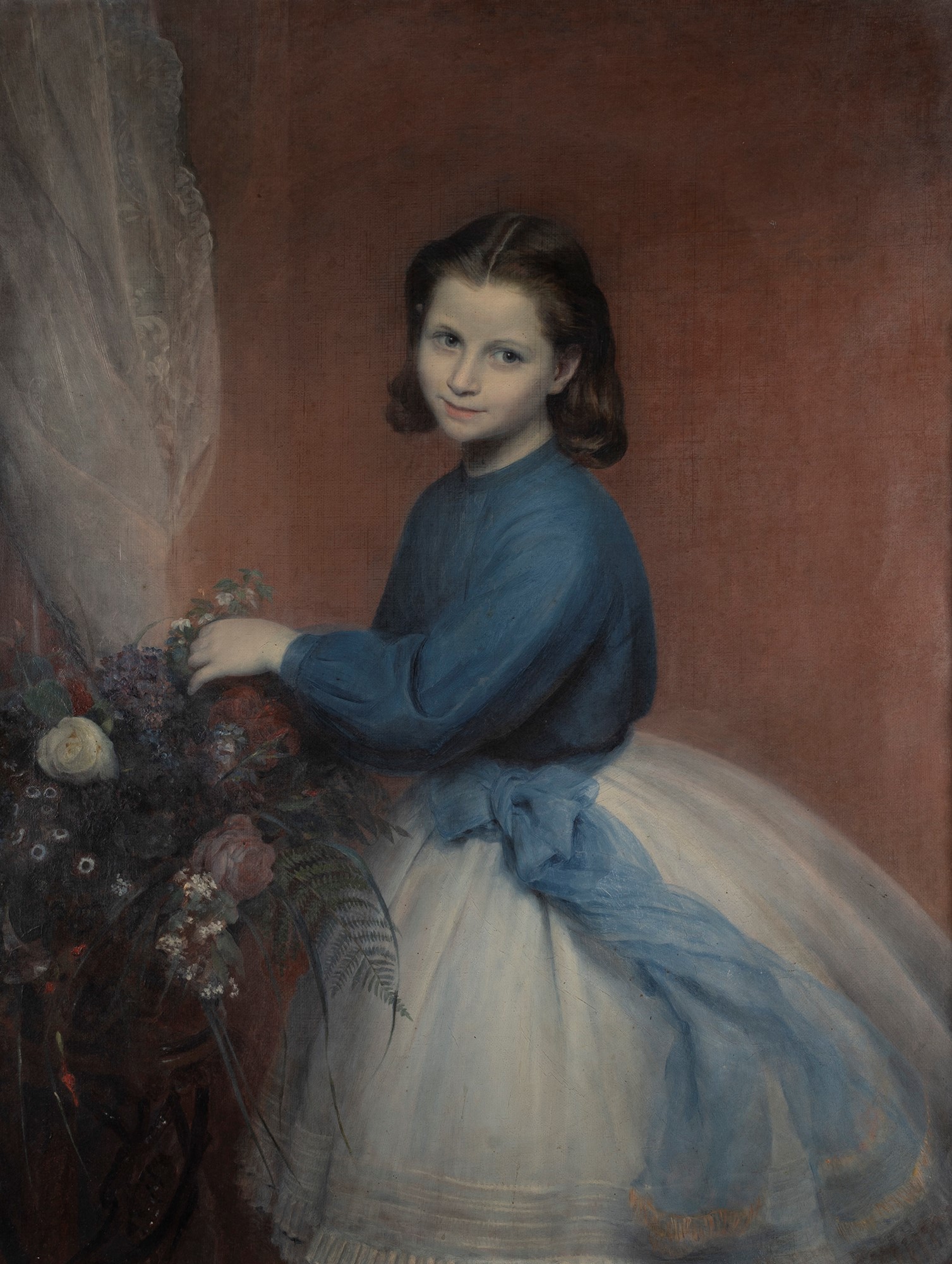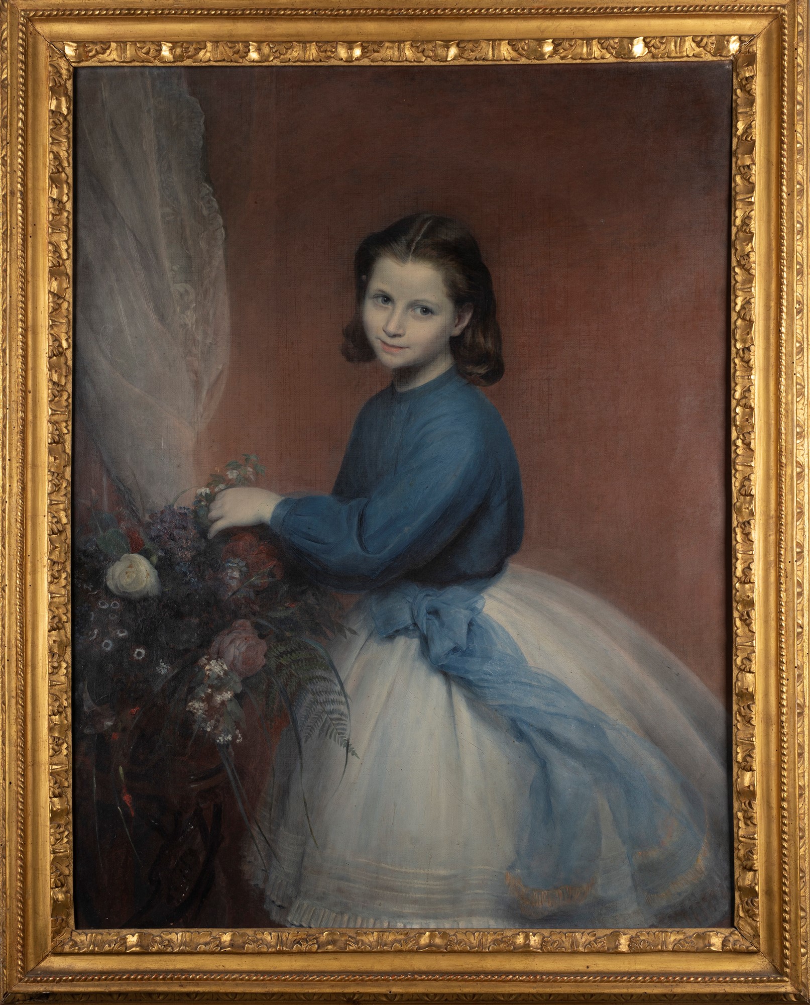 Scuola europea del XIX secolo - Ritratto di bambina con mazzo di fiori