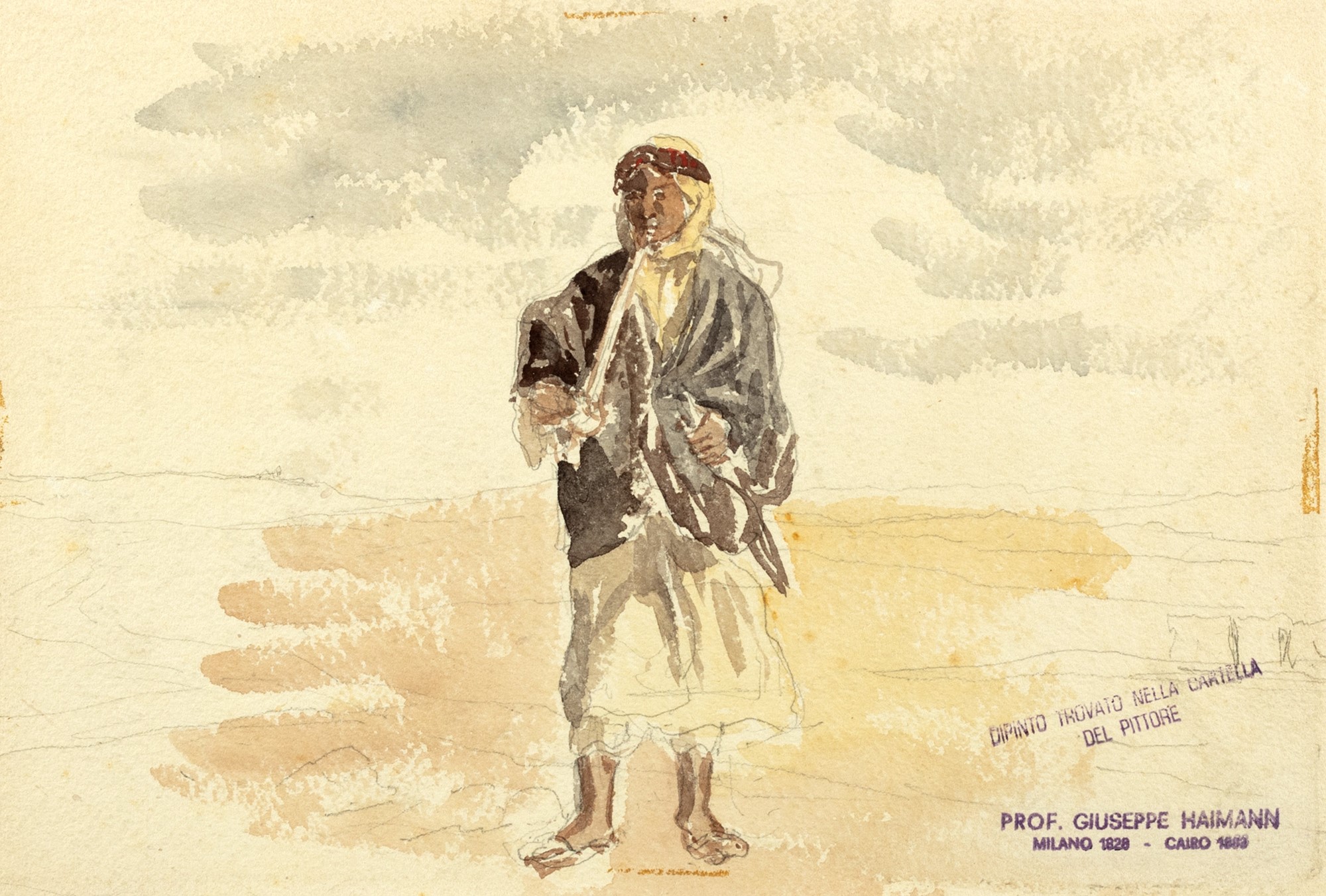 Sul retro, altro dipinto ad acquerello e matita raffigurante beduino nel deserto.