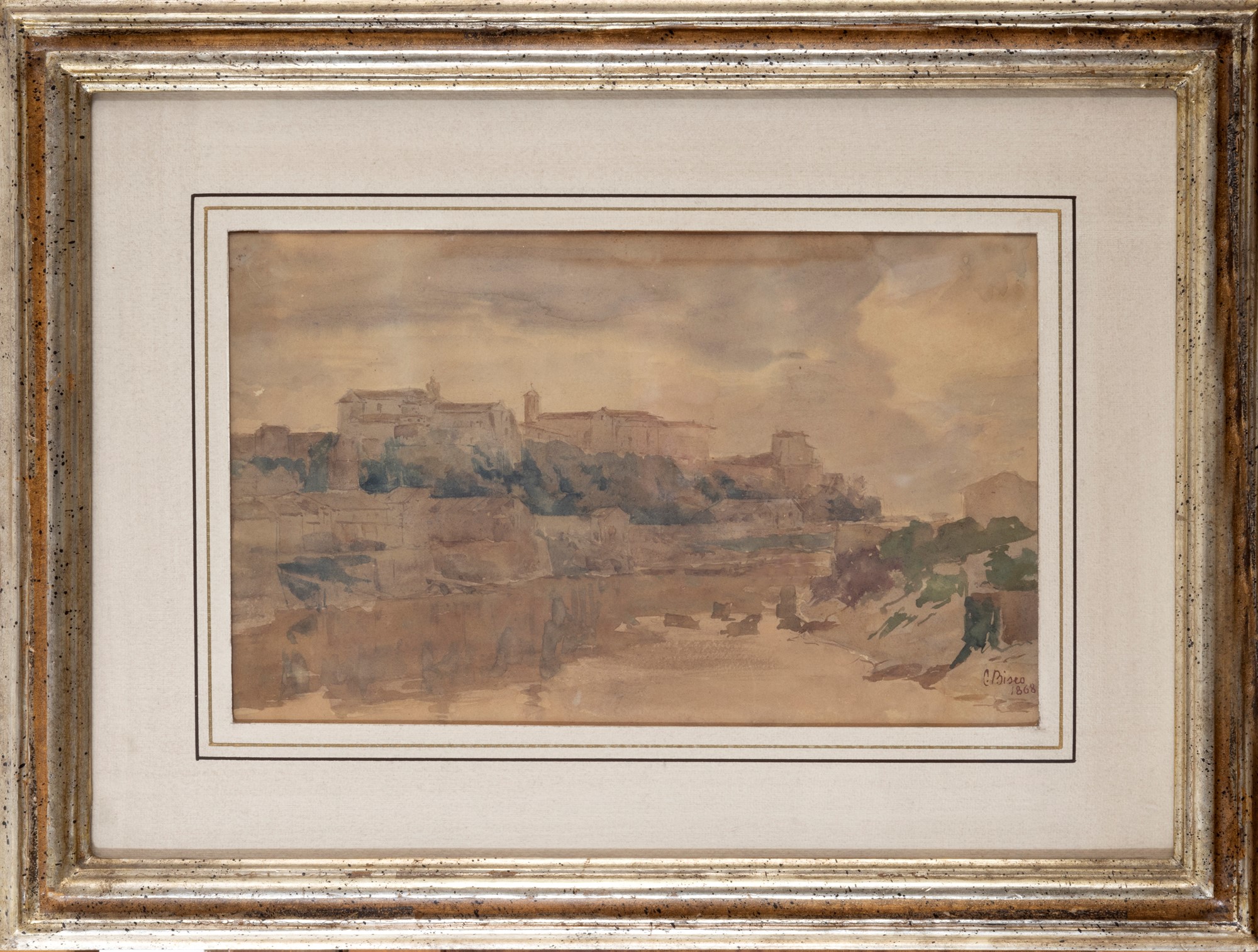 Cesare Biseo (Roma 1843-1909) - Roma, il colle Aventino visto dal Tevere, 1868