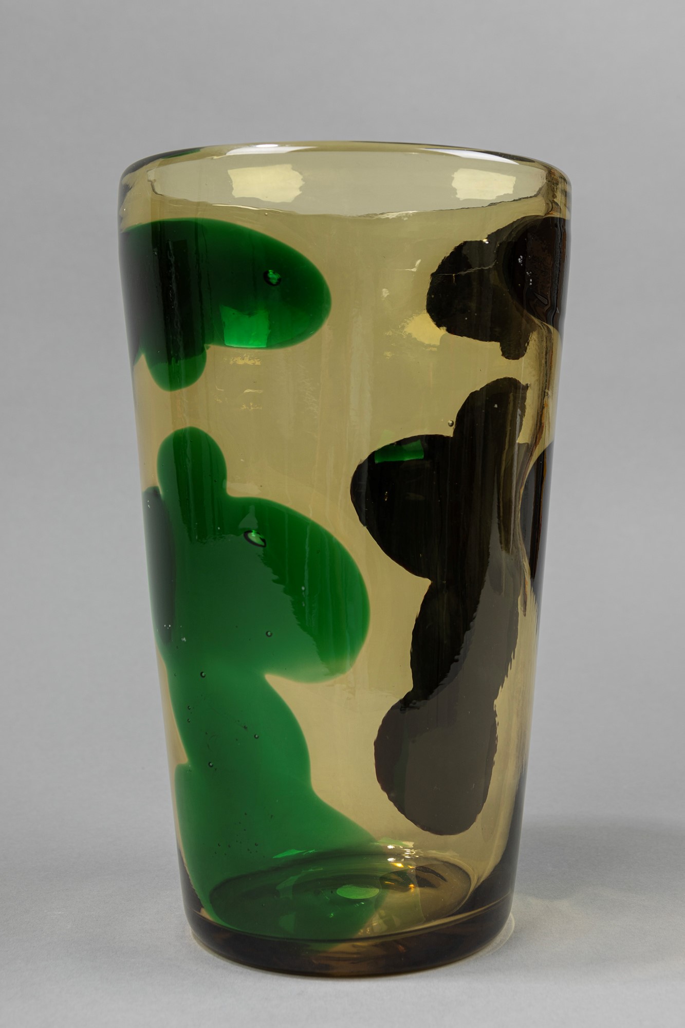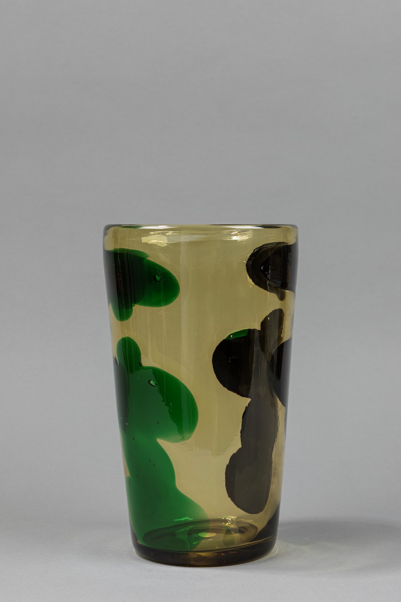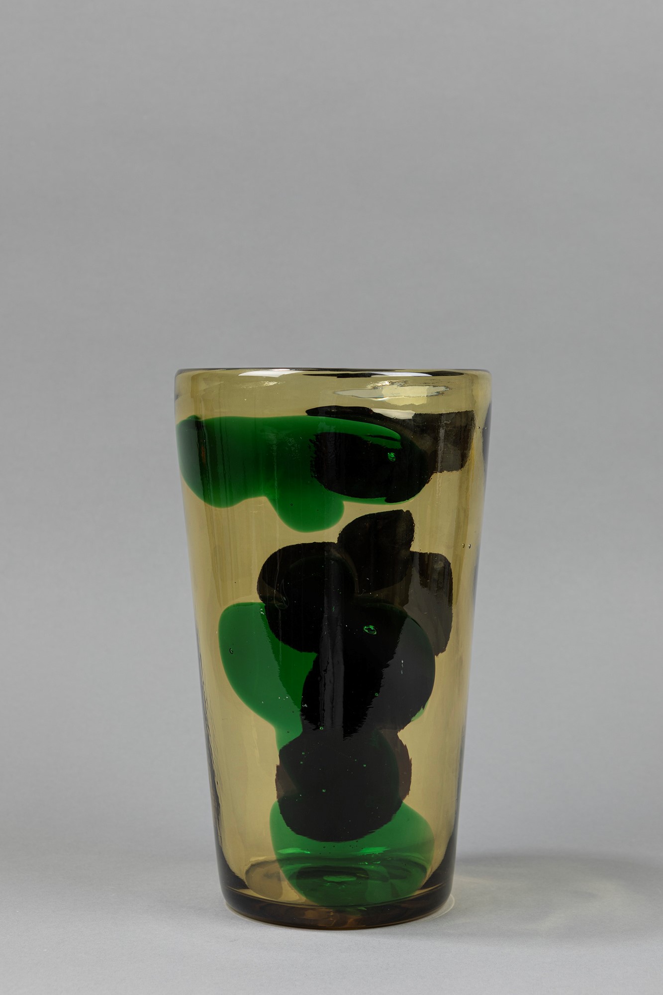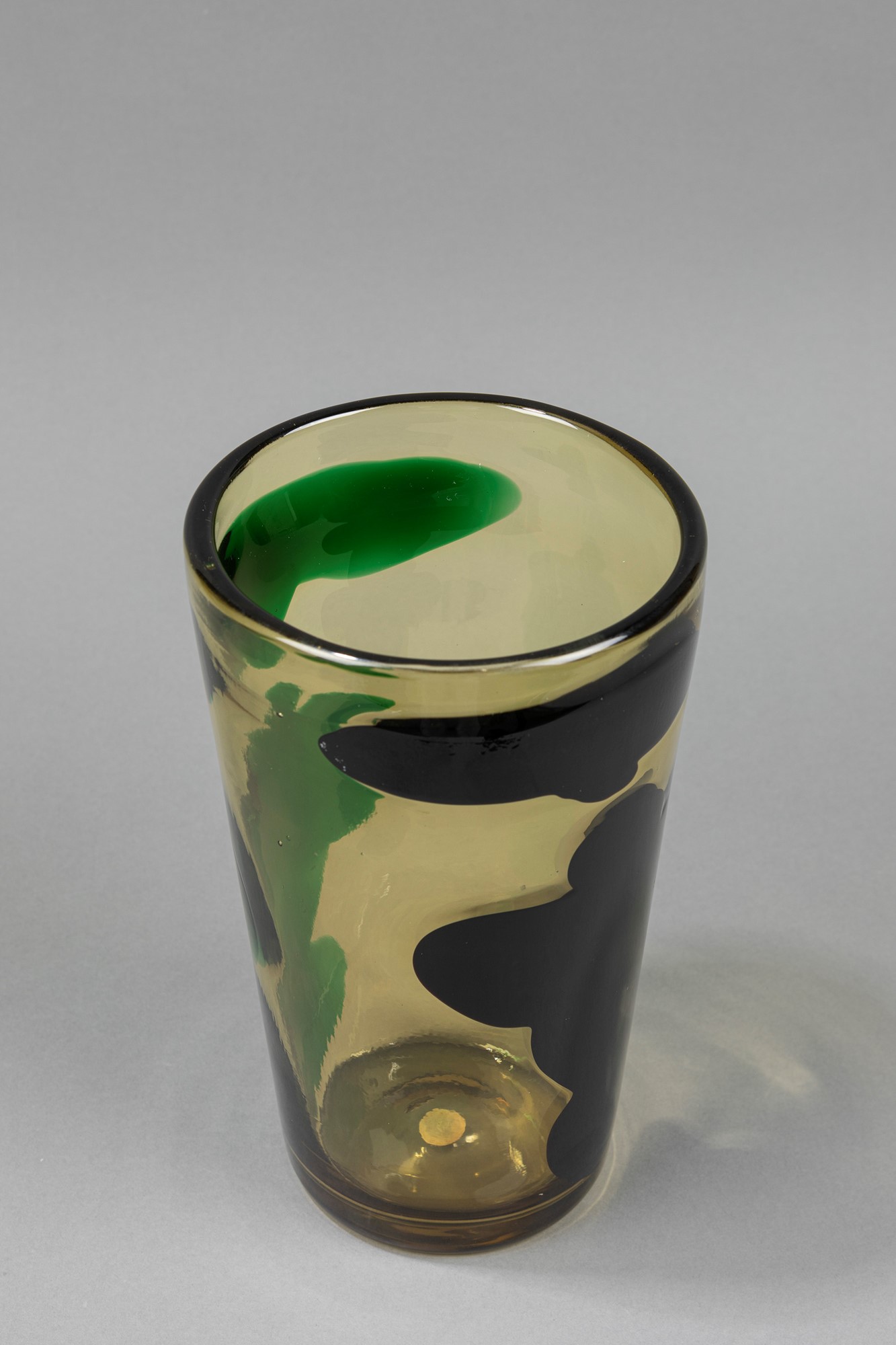 Della serie a Macchie con decoro astratto verde e nero. Produzione Venini. Etichetta originale sotto la base. Firma ad acido Venini Murano Italia.Della serie a Macchie con decoro astratto verde e nero. Produzione Venini. Etichetta originale sotto la base. Firma ad acido Venini Murano Italia.