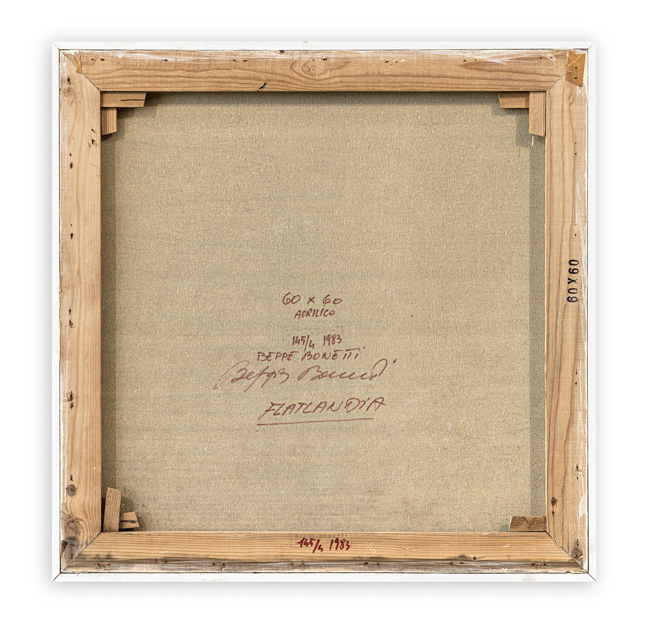 Firma, titolo, datazione, tecnica, misure, timbro dell'Artista con numero di repertorio al retro