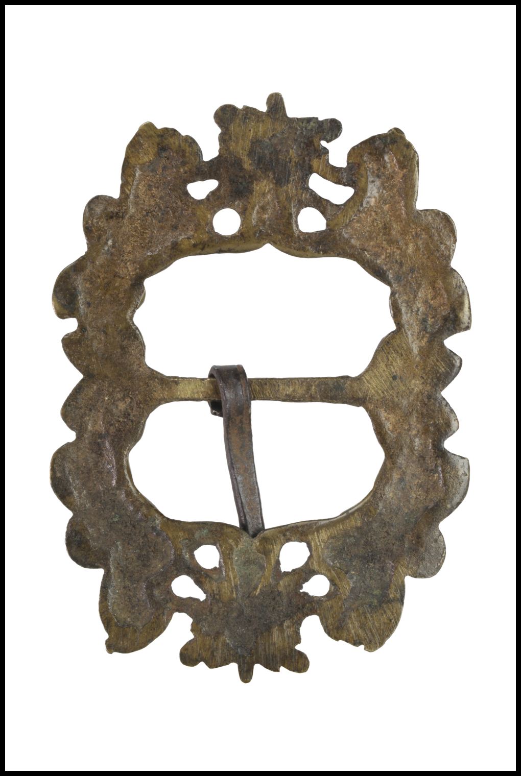 Raro oggetto d'abbigliamento antico, probabilmente una fibbia per una cintura di cuoio.