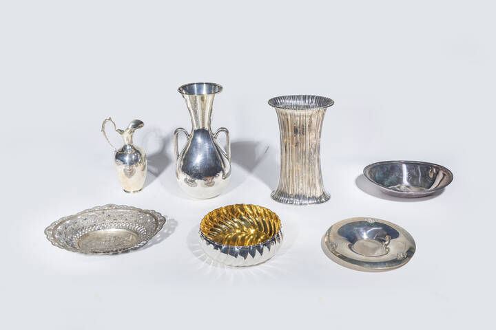 LOTTO DI SETTE OGGETTI IN ARGENTO