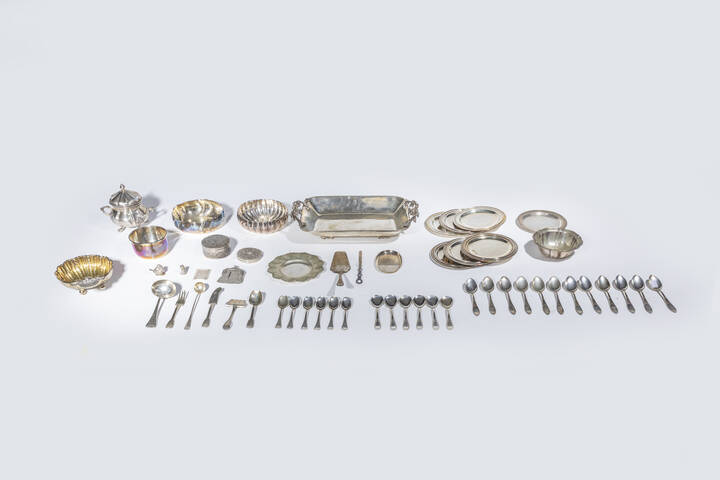 LOTTO DI CINQUANTACINQUE OGGETTI IN ARGENTO