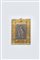 raffigurante la Madonna con Bambino su lastra metallica sbalzata e cesellata entro cornice in bronzo dorato ed inciso, XX secolo, gemme sintetiche di colore verde a decoro (4 mancanti)