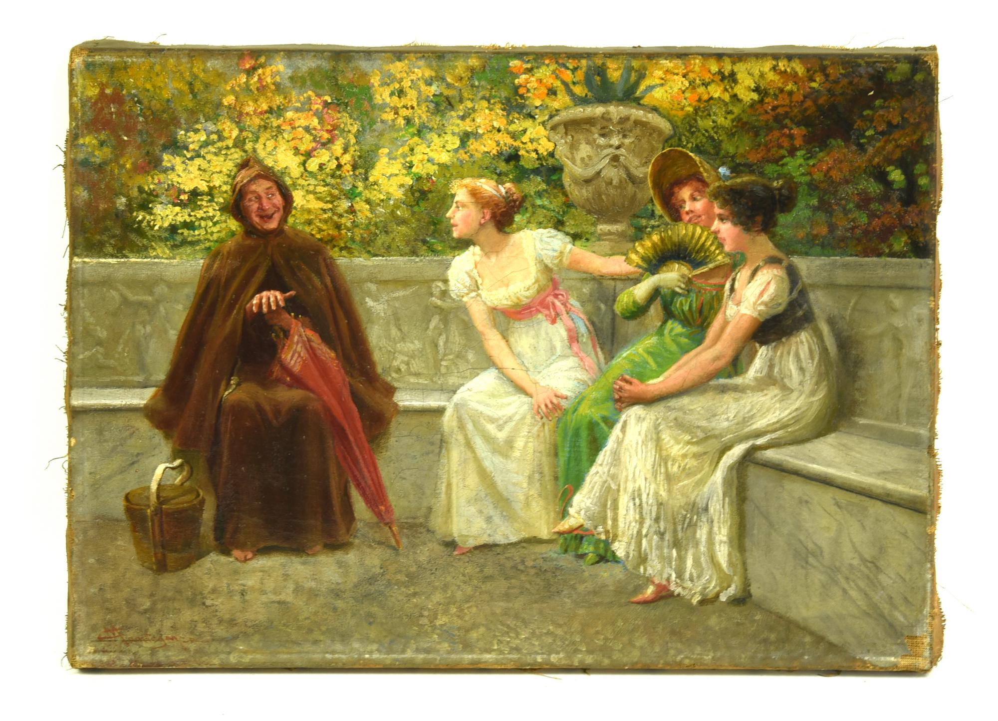 Giacomo Mantegazza (1853 - 1920) CONVERSAZIONE IN GIARDINO olio su tela, cm...