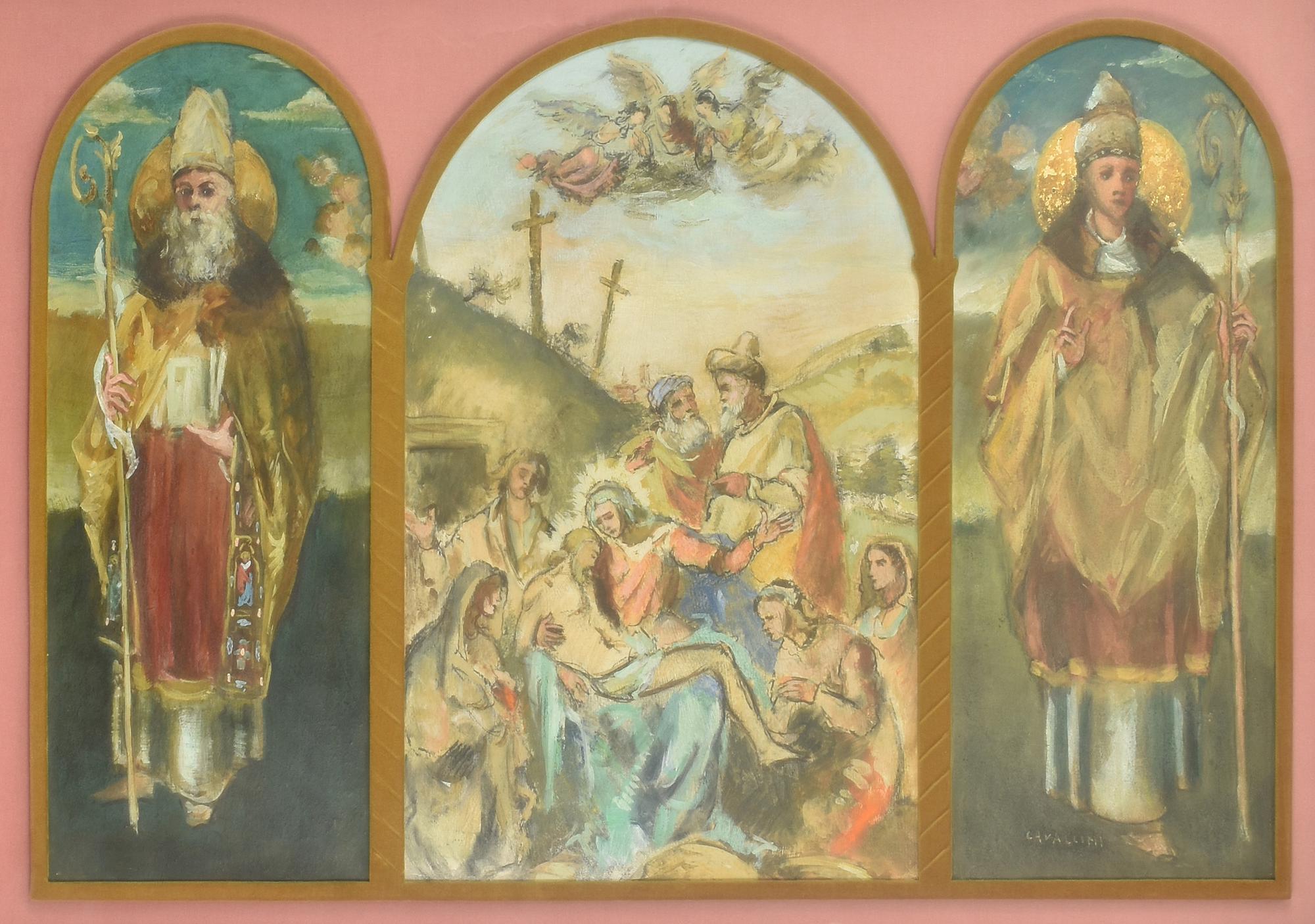 Attilio Cavallini (1888 - 1948) DEPOSIZIONE trittico composto da tre oli su...