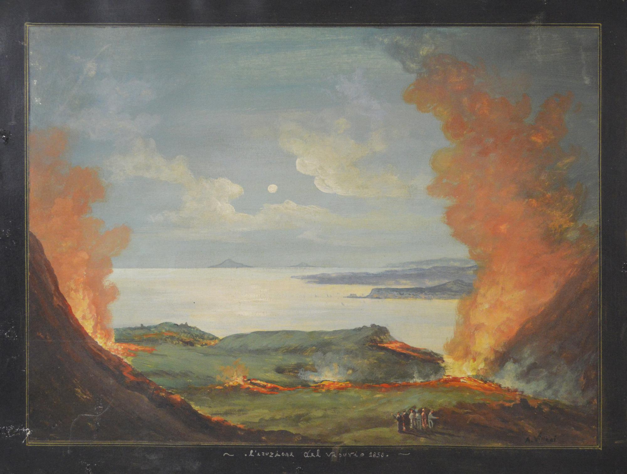 Scuola Napoletana del XIX secolo L'ERUZIONE DEL VESUVIO, 1858 tempera su...