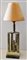 Al centro di questo elemento è presente una piccola colonna in bronzo che sorregge il paralume in carta pergamena cucita a mano.