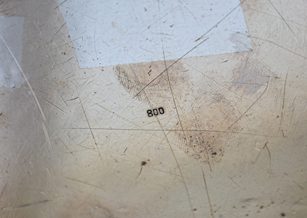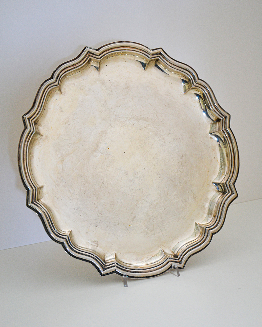 Grande piatto in argento 800 falda a losanghe di foggia italiana, punzonatura 800 sul retro.