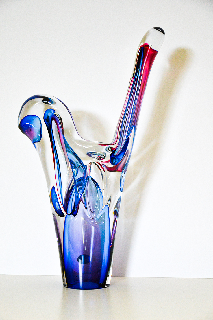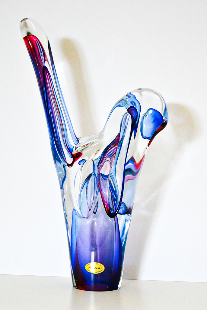 opera unica del maestro Adam Jablonski, realizzata con la particolare tecnica di fondere insieme vetro e metallo per creare un'opera altamente riflettente con una superba iridescenza.