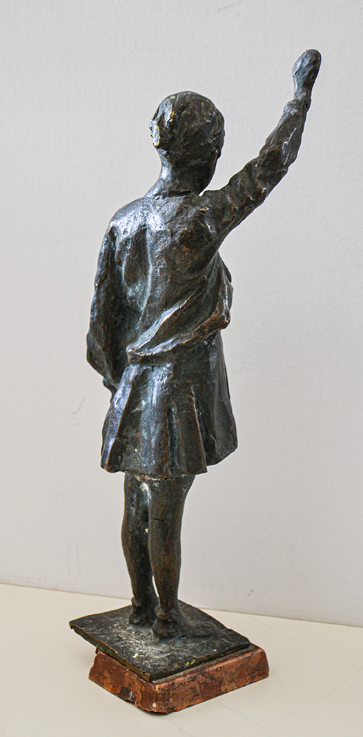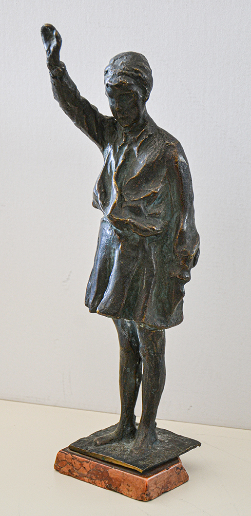 Scultura in bronzo raffigurante una giovane italiana nell'atto del saluto romano.