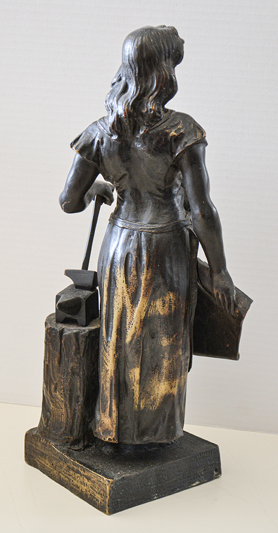 Scultura in bronzo raffigurante l'allegoria dell'industria, si presume sia una statuetta ad uso privato utilizzata come cadou.