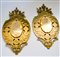 Lotto composto da n° 2 cornici in metallo dorato in stile francese decorate con placche raffiguranti scene romantiche.