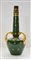 Importate vaso a collo alto a forma di anfora con tre anse in porcellana di tipo Sevres smaltata verde e decori in oro zecchino.