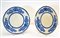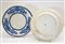 Lotto composto da n° 2 piatti piatti inglesi a fondo bianco con decori a ghirlande blu.