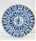 Grande piatto in ceramica a fondo avorio dipinto a motivi floreali blu.