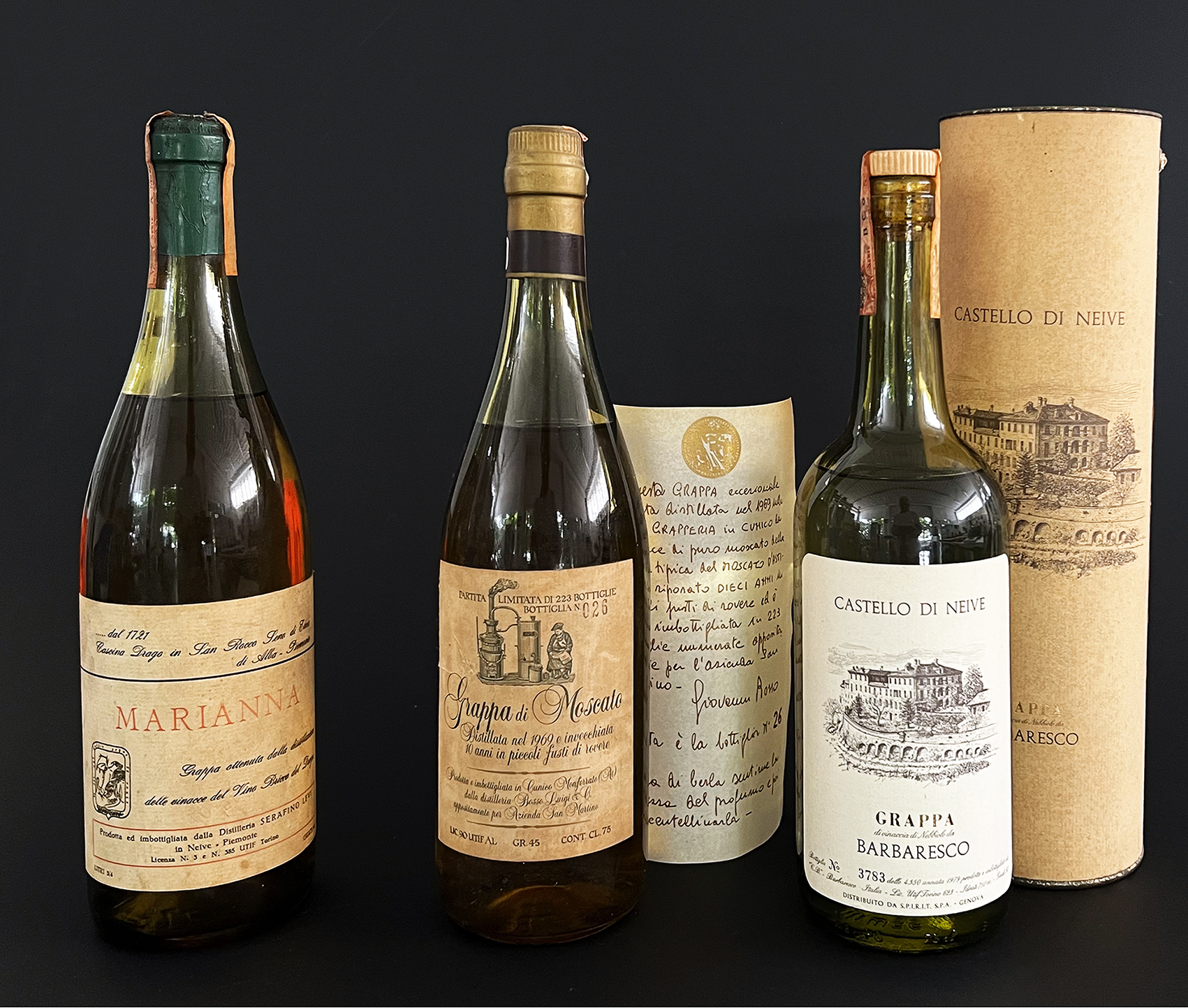 - Grappa Castello di Neive, distribuito da Spirt s.p.a Genova Es. 3783/4350 anno 1979 - 50°, astuccio originale.