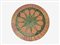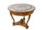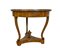 Tavolo in legno rotondo con ripiano a tarsie marmoree.