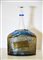 Vaso dal corpo trasparente di forma appiattita decorato su ogni lato con un pannello rettangolare in rame e schizzi policromi su un fondo blu cobalto screziato.