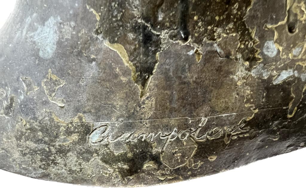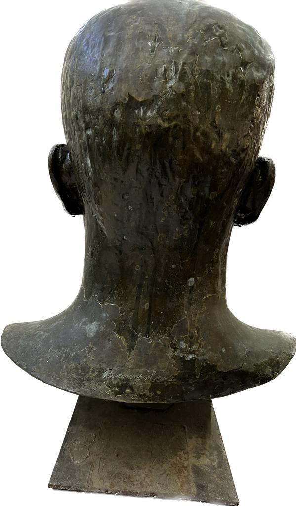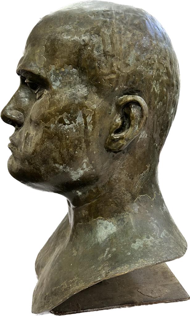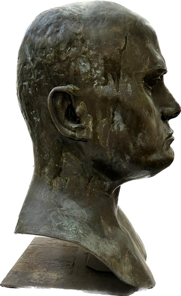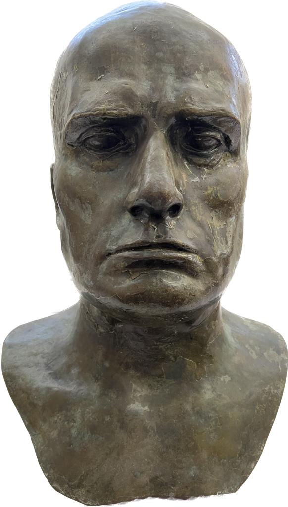 Imponente rappresentazione del Duce realizzata dall'artista Italo Rossi Ciampolini, opera in bronzo in patina scura cimelio integro e completo di base originale.