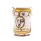 Cilindro in ceramica smaltato e decorato, con medaglione con iniziali (mancanze e usure).