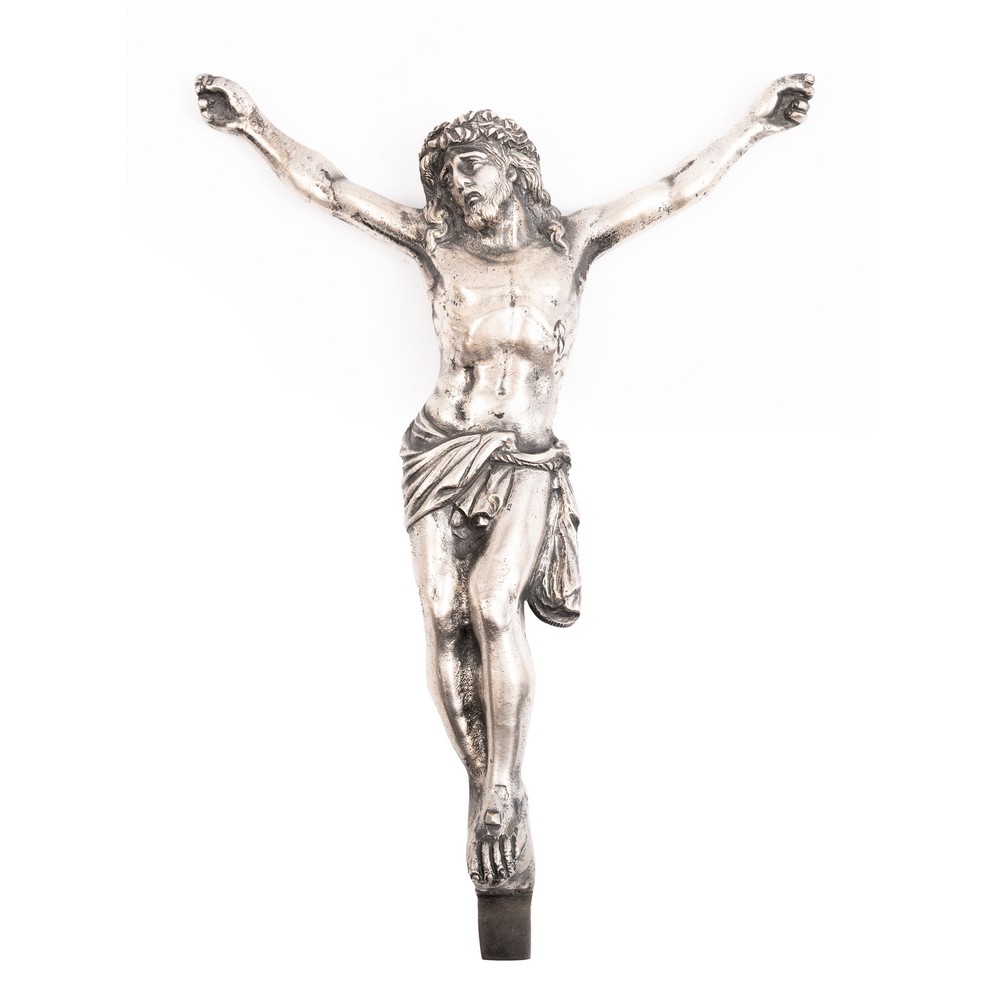 Previous Lot 98 Next Trionfante Benedetto Casa d'Aste - Viale Regione Siciliana 4975, 90146 Palermo ASTA 120 bis ARREDI ED OGGETTI DA COLLEZIONE Tuesday 11 July 2023 hours 15:00 (UTC +01:00) CRISTO in argento CRISTO in argento (g. 451). Primi '900. cm 14,5 x 2 Alt. 21.