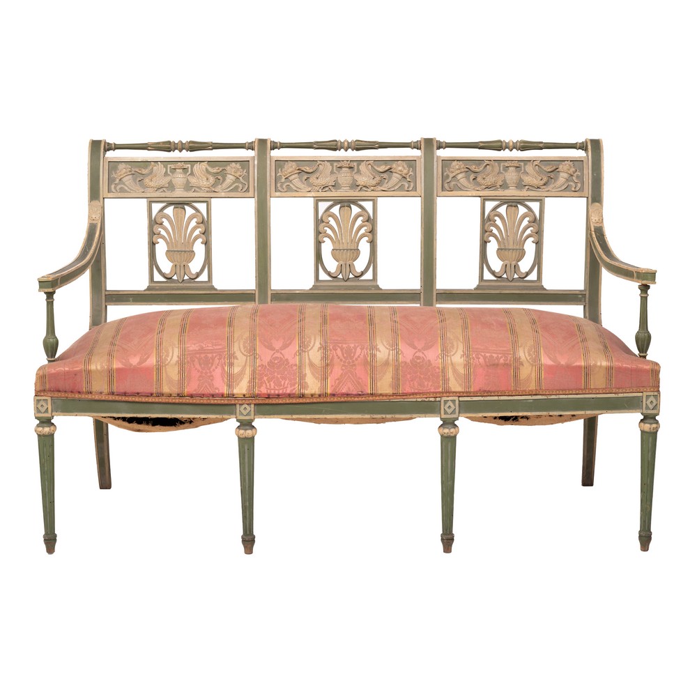 DIVANO stile Impero in legno laccato nei toni del verde.