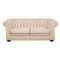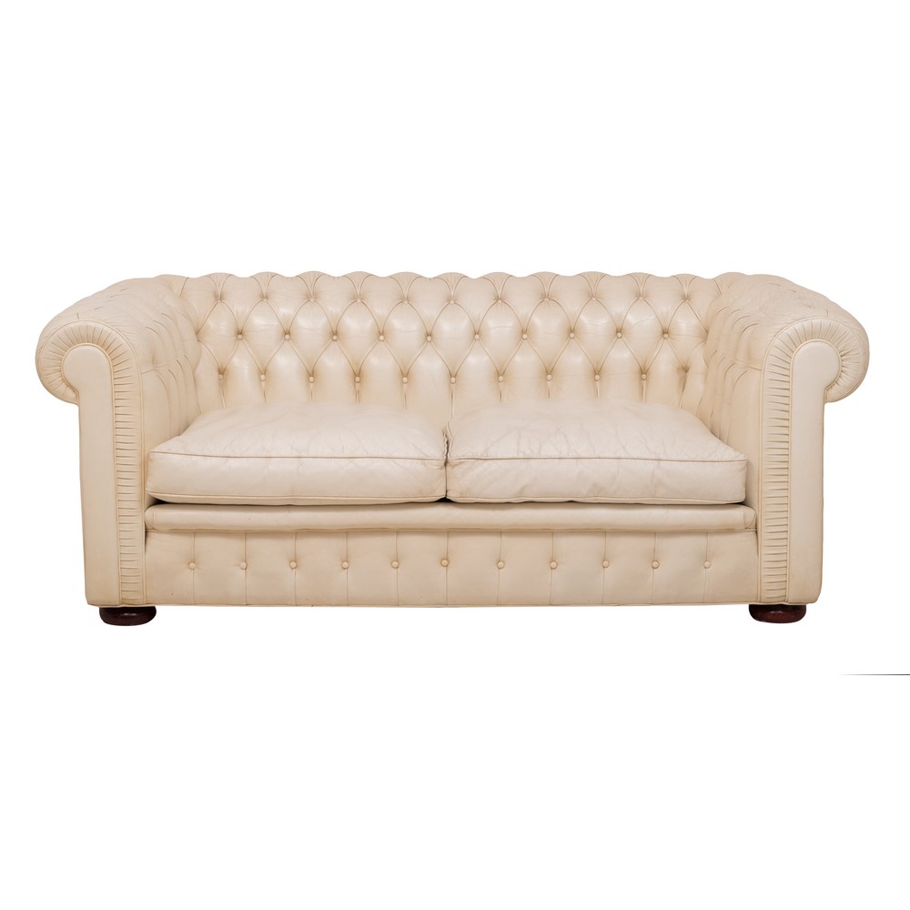 DIVANO tipologia Chesterfield in pelle nei toni del bianco a due posti (usure e macchie).