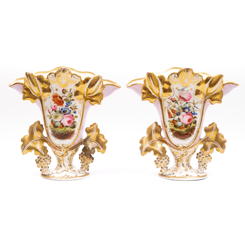 COPPIA VASI Luigi Filippo in porcellana dipinta e decorata in oro (restauri).