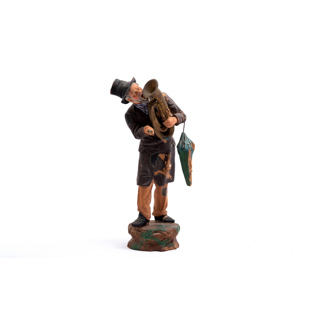 SCULTURA in terracotta policroma raffigurante "Musicante" (usure e mancanze).