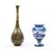 Vaso a collo stretto in ceramica smaltata e decorata raffigurante "Figure marine" e vaso in ceramica smaltata e decorata nei toni del blu raffigurante "Paesaggio".