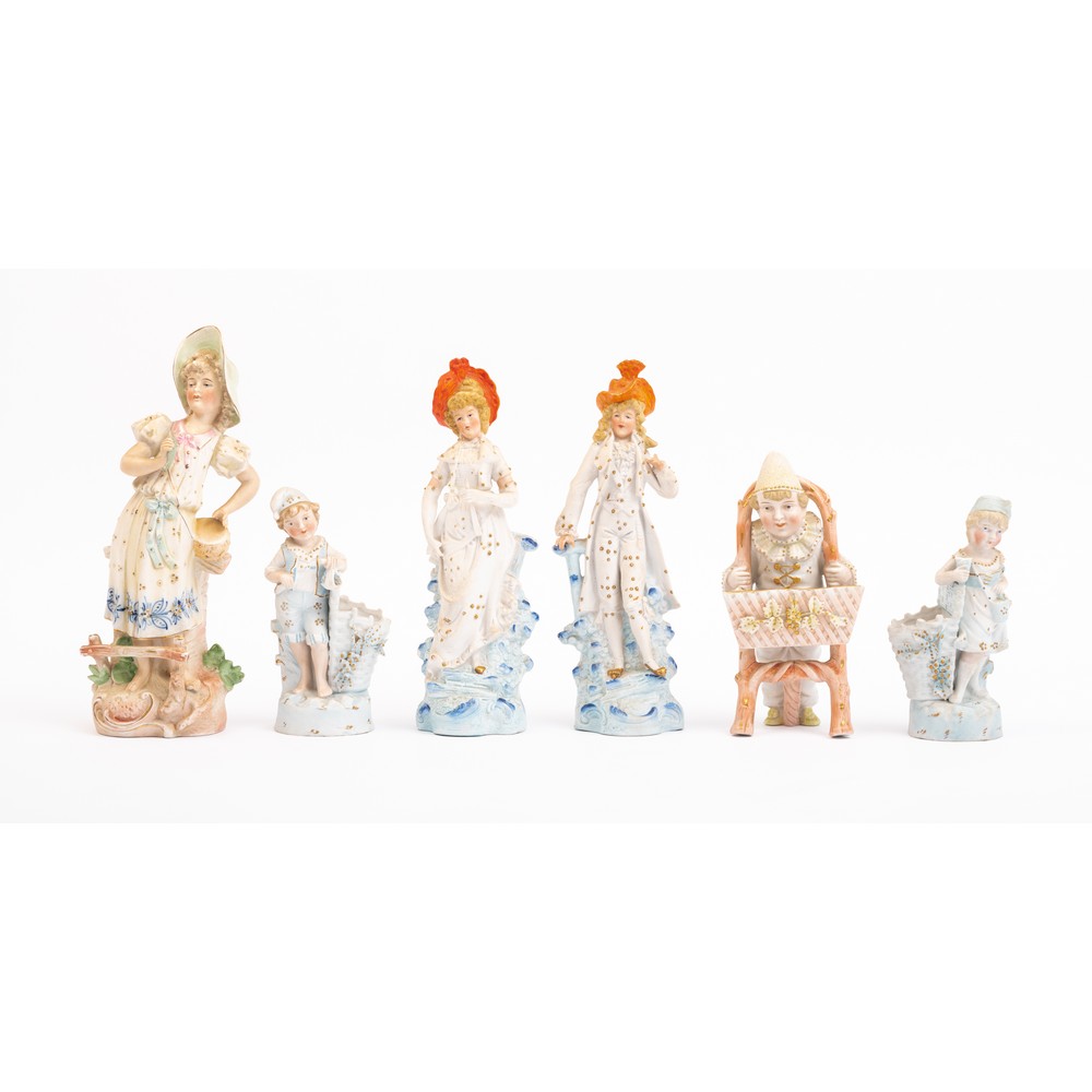 SEI SCULTURE in biscuit policromo raffigurante "Soggetti vari".