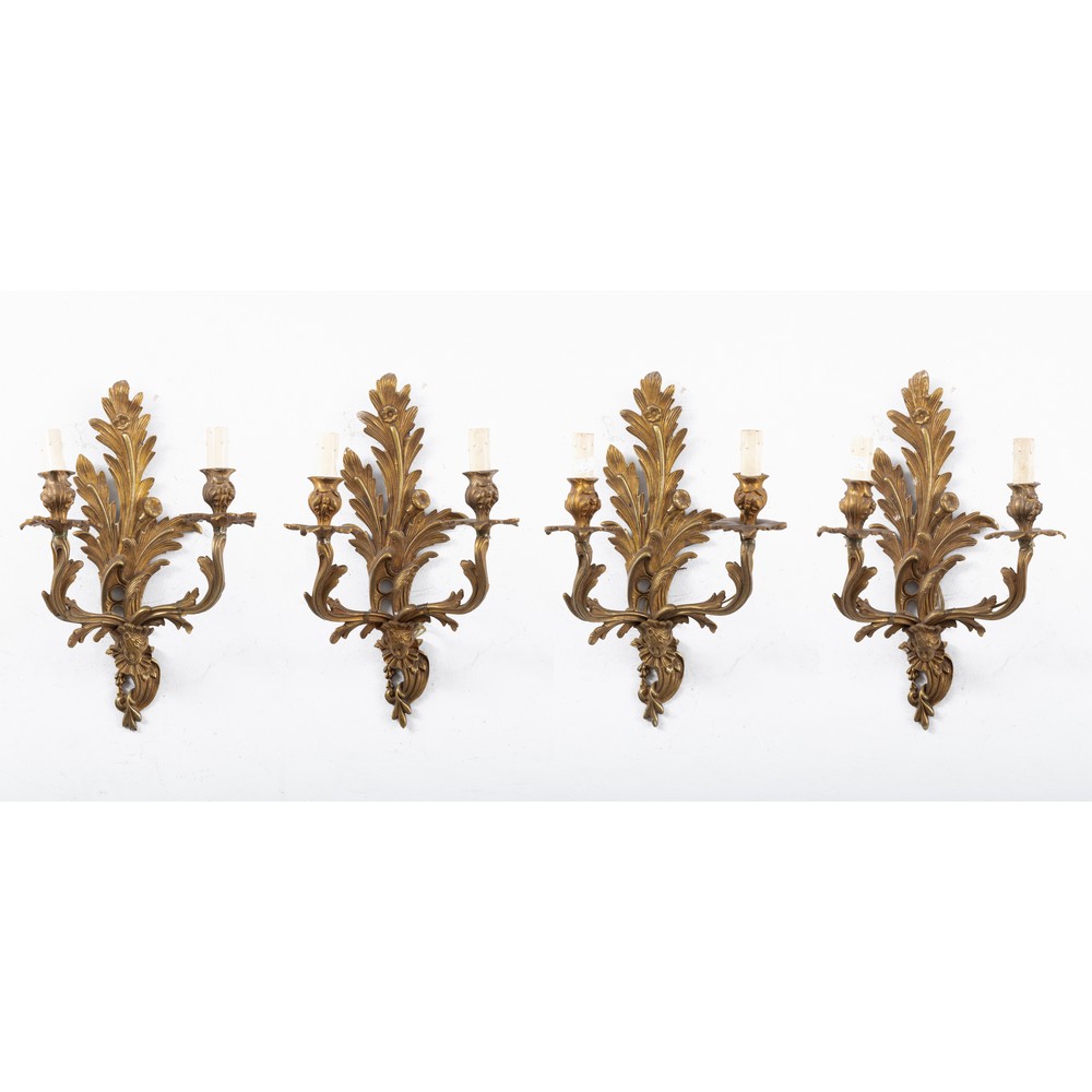 QUATTRO APPLIQUE a due lumi stile Luigi XVI in bronzo dorato.