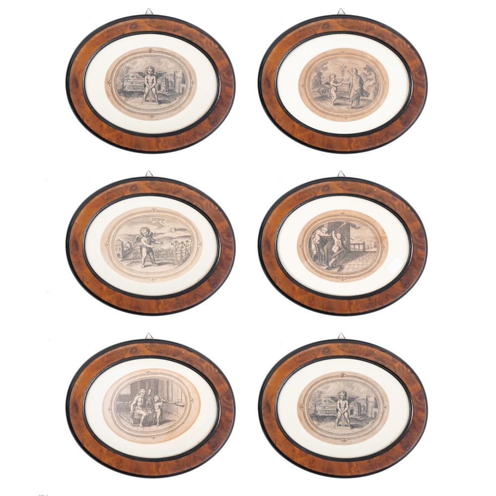 SEI INCISIONI di forma ovale "Amorini", entro cornici.