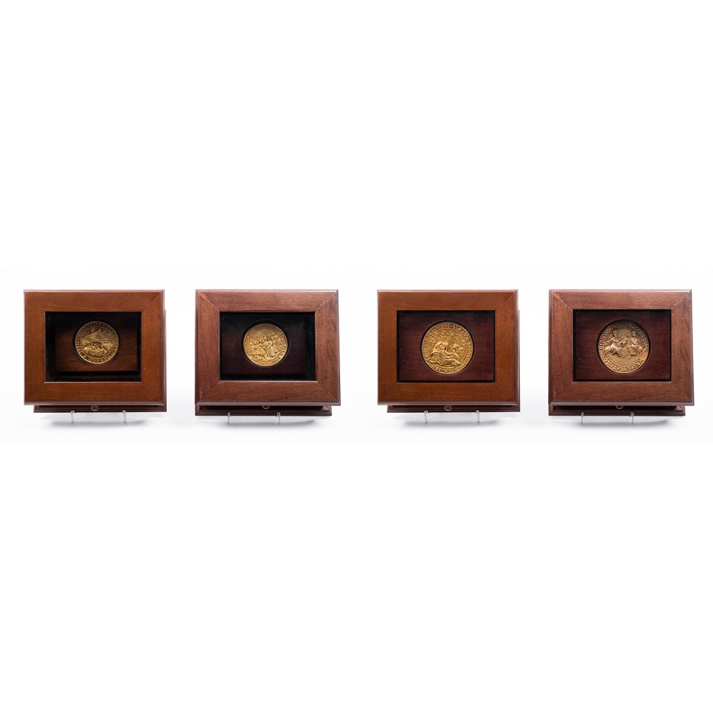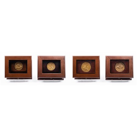 Sigillo raffigurante "Federico II con la moglie Bianca Lancia", sigillo raffigurante "La nascita di Federico II", sigillo raffigurante "Ruggero II con la moglie Beatrice" e sigillo raffigurante "Federico II con la moglie Jolanda", entro teche in legno