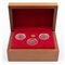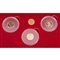 Medaglia commemorativa 1 lira 2001 in oro 18 KT (g. 3,10), moneta 1 lira 1860 in oro 18 KT (g. 3,20), moneta 1 lira 1808 in oro 18 KT (g. 3,10), moneta in oro 18 KT (g. 3,15), entro cofanetto in legno.