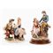 Due sculture in porcellana decorata e dipinta raffiguranti Scene Galanti"; una scultura firmata Meneghetti, l'altra con base in legno (usure).