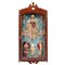 composizione di figure sacre in ceroplastica con coralli e perline, entro teca.