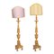 Coppia candelabri in legno dorato, elettrificati con ventole.