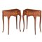 Coppia piccole consolle stile Luigi XIV con cassetto centrale in ebano violetto lavorato a lisca di pesce (mancanze).