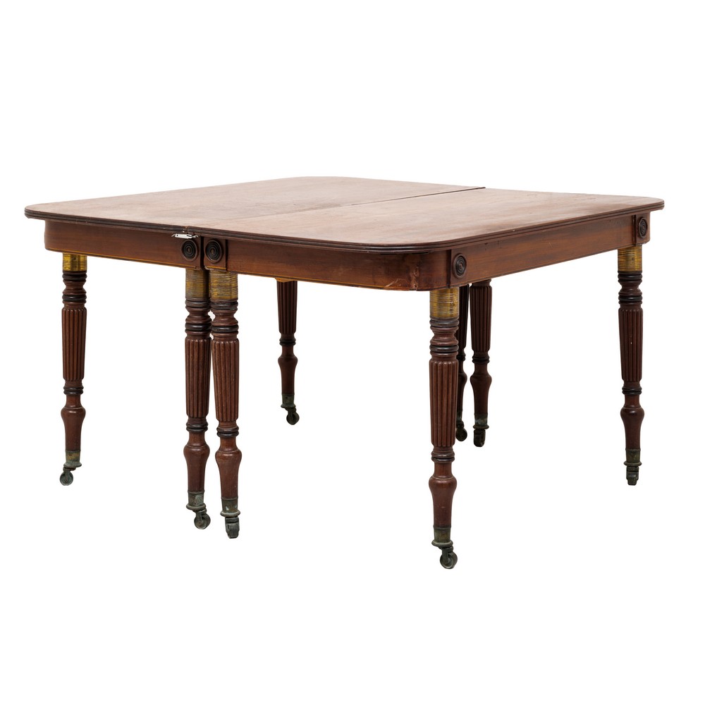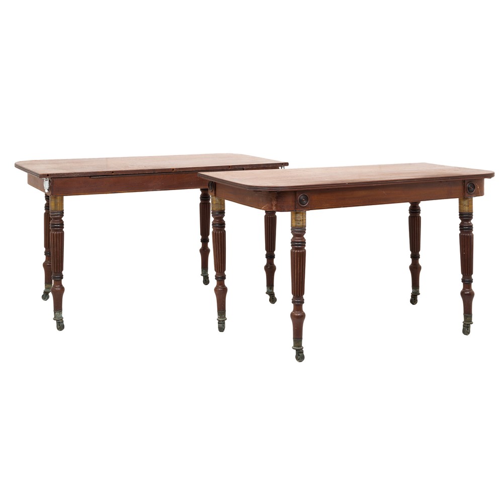Tavolo due mezzine, con tre prolunghe in legno di mogano, periodo Vittoriano.