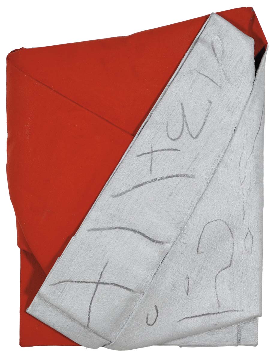 BERLINGERI CESARE Cittanova (Rc) 1948 Rosso e argento piegato 2010 tecnica mista su tela piegata 36,5x27 firma data e titolo al retro Autentica dell'Autore su foto