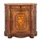 CREDENZA sagomata di gusto francese in legno di noce e radica, riccamente intarsiata in legno di bosso con piano in marmo rosso venato.