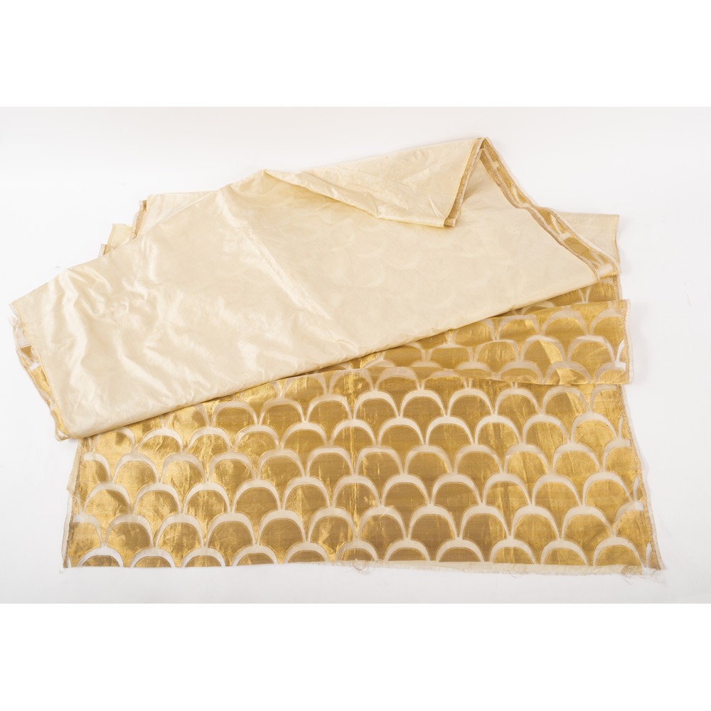 TESSUTO in seta nei toni dell'avorio con applicazioni in filigrana d'oro.