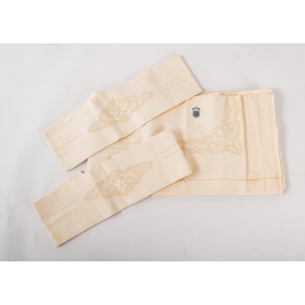 LENZUOLO MATRIMONIALE con 2 federe nei toni del beige con ricami a mano (macchie).