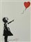Banksy GIRL WITH A BALLOON sprayed stencil su carta, cm 26x20 timbro The...