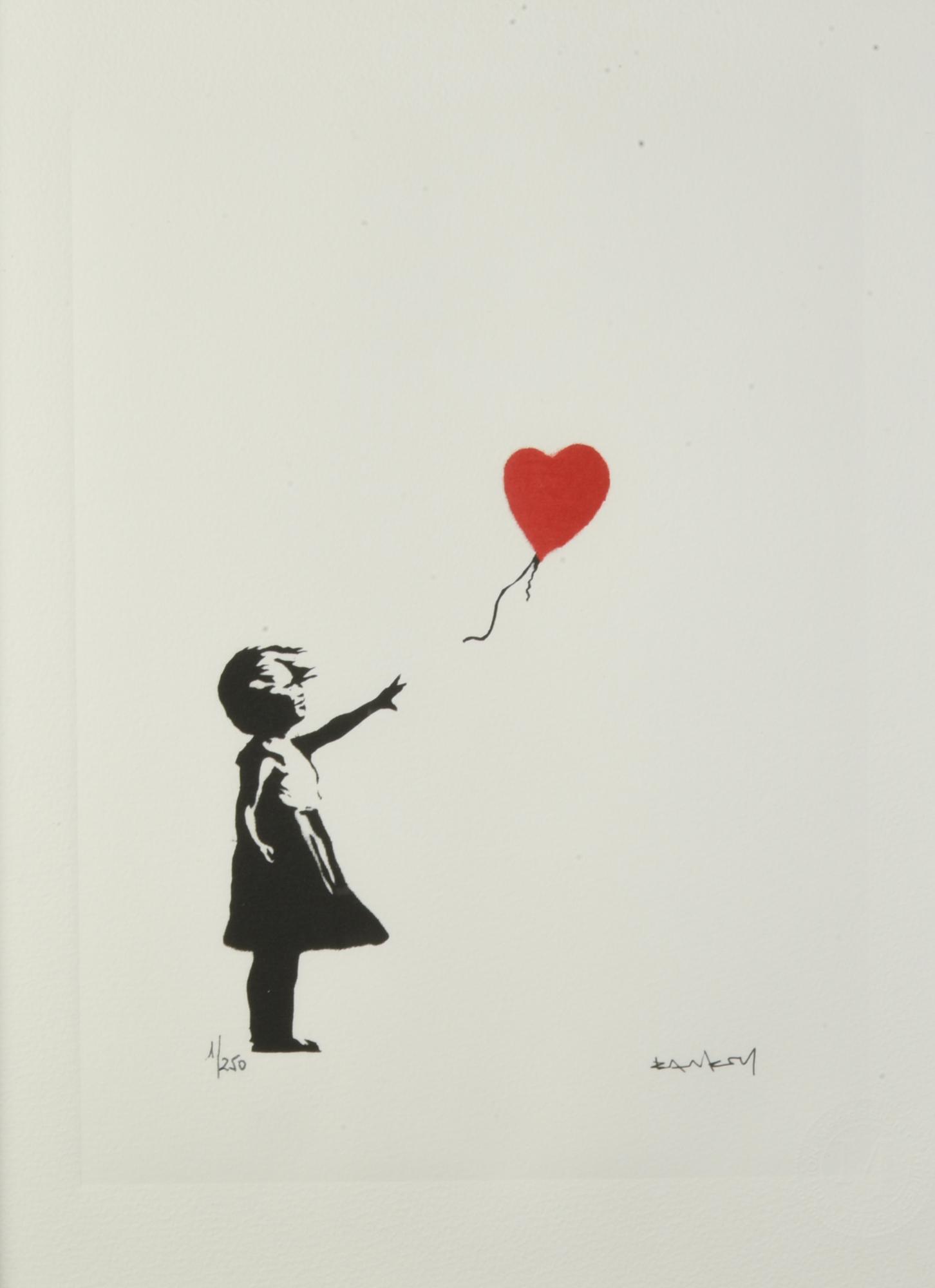 Da Banksy GIRL WITH RED BALLOON eliografia su carta Arches, cm 38x28; es....