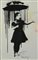 Banksy UMBRELLA GIRL sprayed stencil su carta, cm 28x17,5 timbro The Walled...