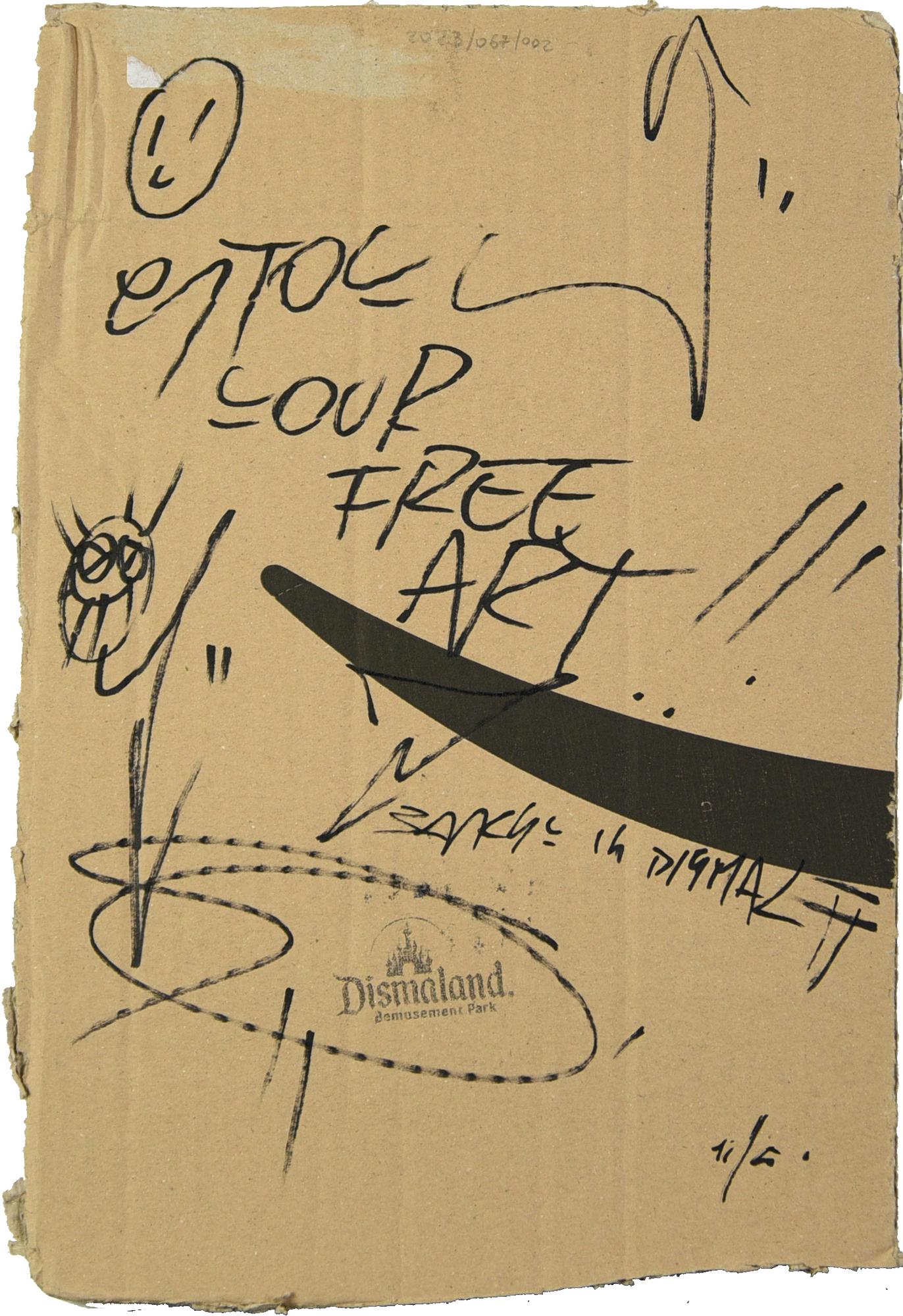 L'opera e' accompagnata da certificato di provenienza della Rare and Signed e dal biglietto di ingresso a Dismaland